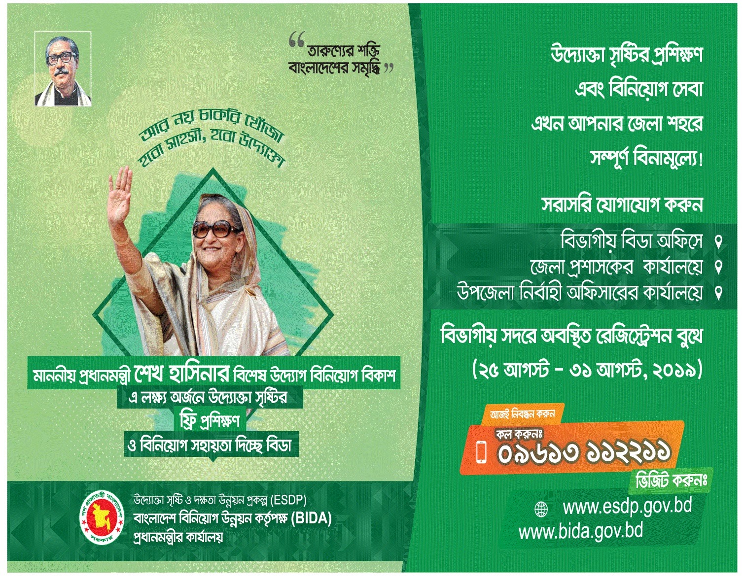 | ৬ | উদ্যোক্তা সৃষ্টির ফ্রি প্রশিক্ষণ | | | ২৫-০৮-২০১৯ | দেখুন |